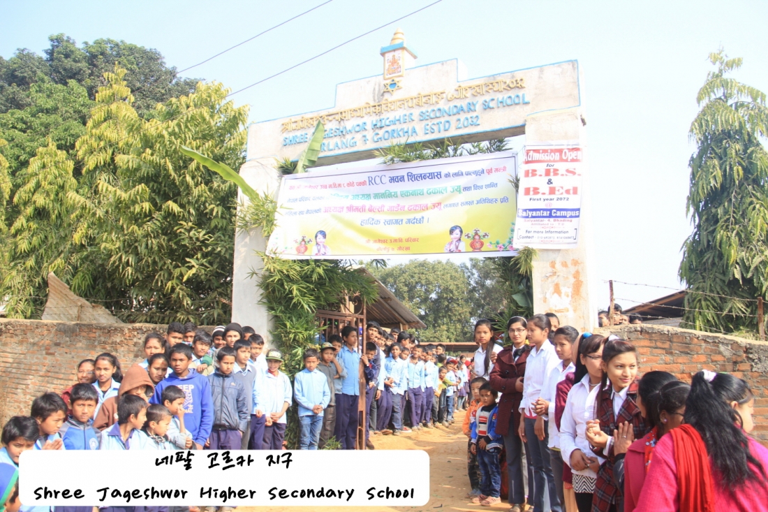 Shree Jageshwor Higher Secondary School 은 네팔 고르카 지구 Mahadevtar 지역에 위치하며, 360명의 학생이 공부하는 학교로서 이번 지진으로 학교가 파괴되어 임시 건물을 설치하여 공부 하고 있으며. 유치원부터 고등학교까지 12학년제로 운영되고 있다.