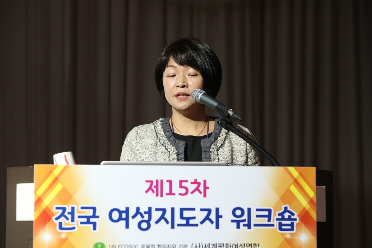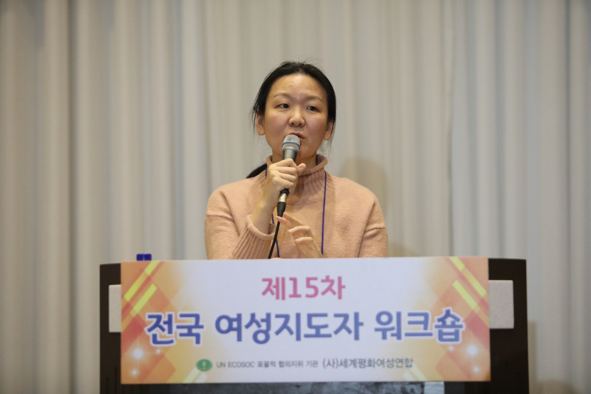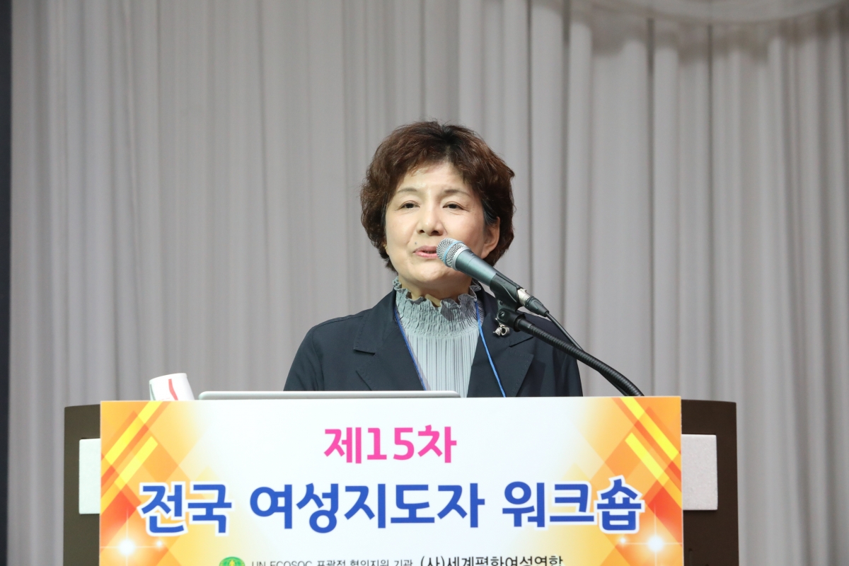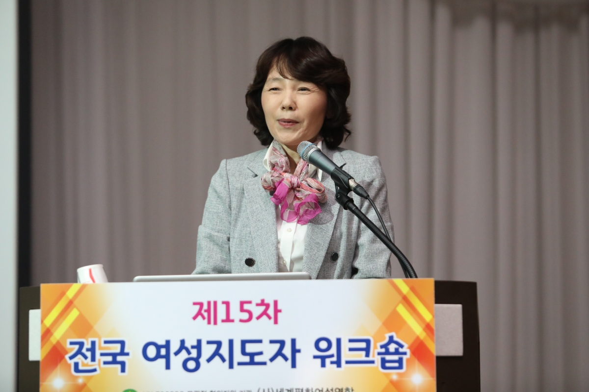 최영선 한국회장의 개회인사를 시작으로 2박3일의 제15차 여성연합 워크숍은 시작되었다. 최영선 한국회장은 “전국 각 지역에서 다양한 활동과 지역사회 변화를 이끌어 감에 감사드린다. 1년간의 활동 내용을 점검하고 2019년 활동 목표를 세우는 시간이 되길 바란다.”고 인사말을 했다.