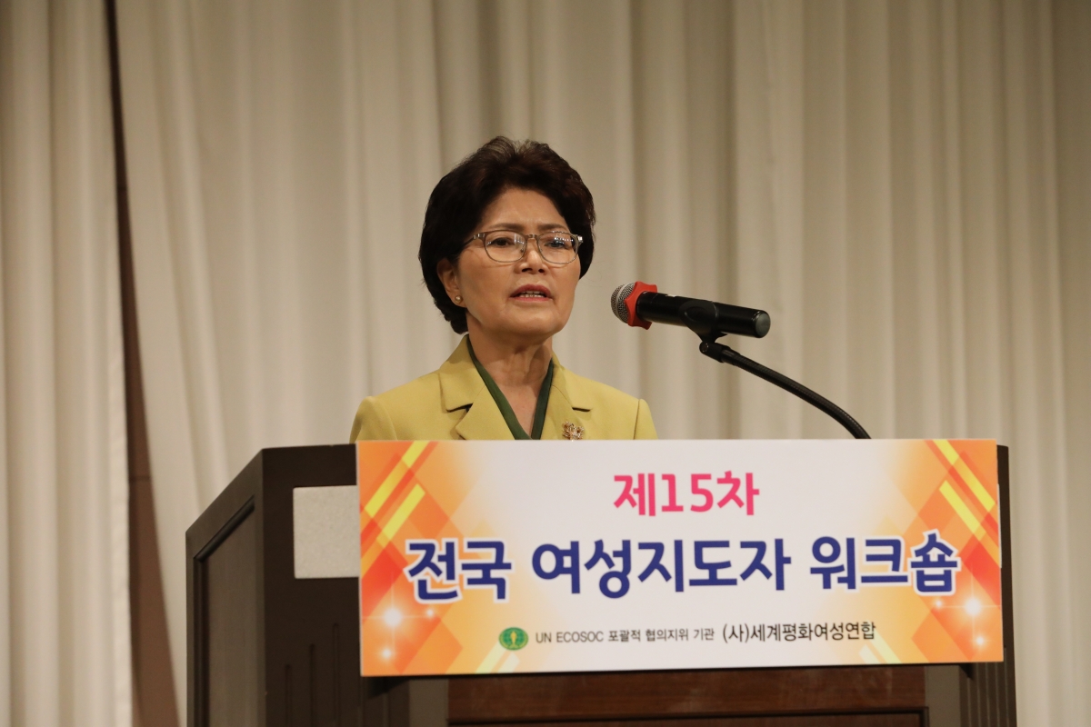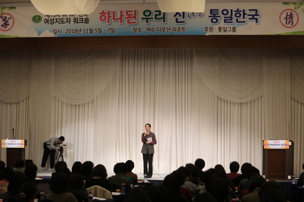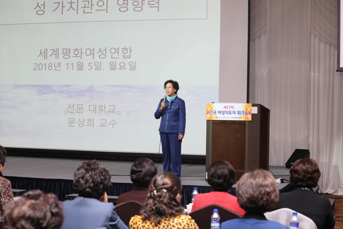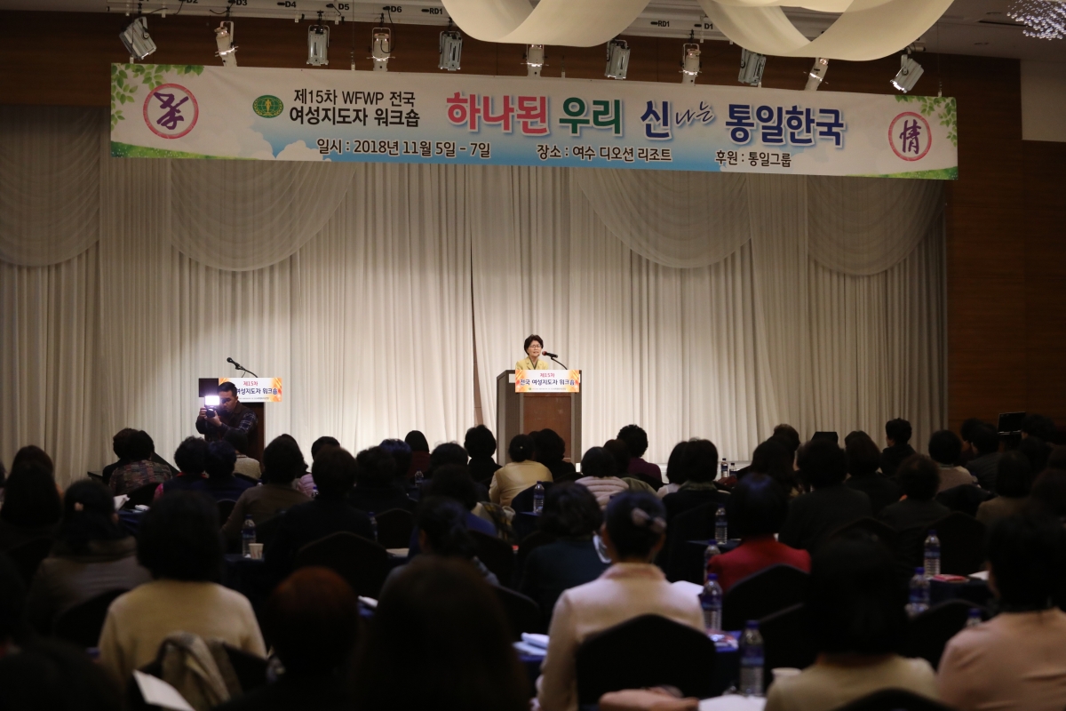 세계평화여성연합(이하 여성연합) ‘2018 제15차 전국여성지도자 워크숍’이 11월 5일부터 7일까지 280여명의 여성연합 회장과 임원들이 참석한 가운데 여수 디오션리조트에서 2018년 5개 지구 활동보고 및 지원 사업 활동보고, 6강좌의 특강, 효정 한마당, 지구별 2019년 활동계획 토의 및 발표로 진행되었다.