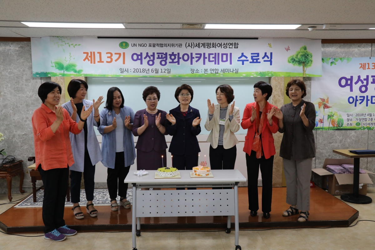 지역 여성지도자의 역량강화와 여성연합 차세대 지도자를 양성을 목적으로 4월17일 청파동 2층 세미나실에서 제13기 여성평화 아카데미 과정을 개강하여 6월12일까지 생활원리. 인문학. 리더십. 국제사회 및 정치. 통일등의 주제로 총12강좌가 진행 되었다.