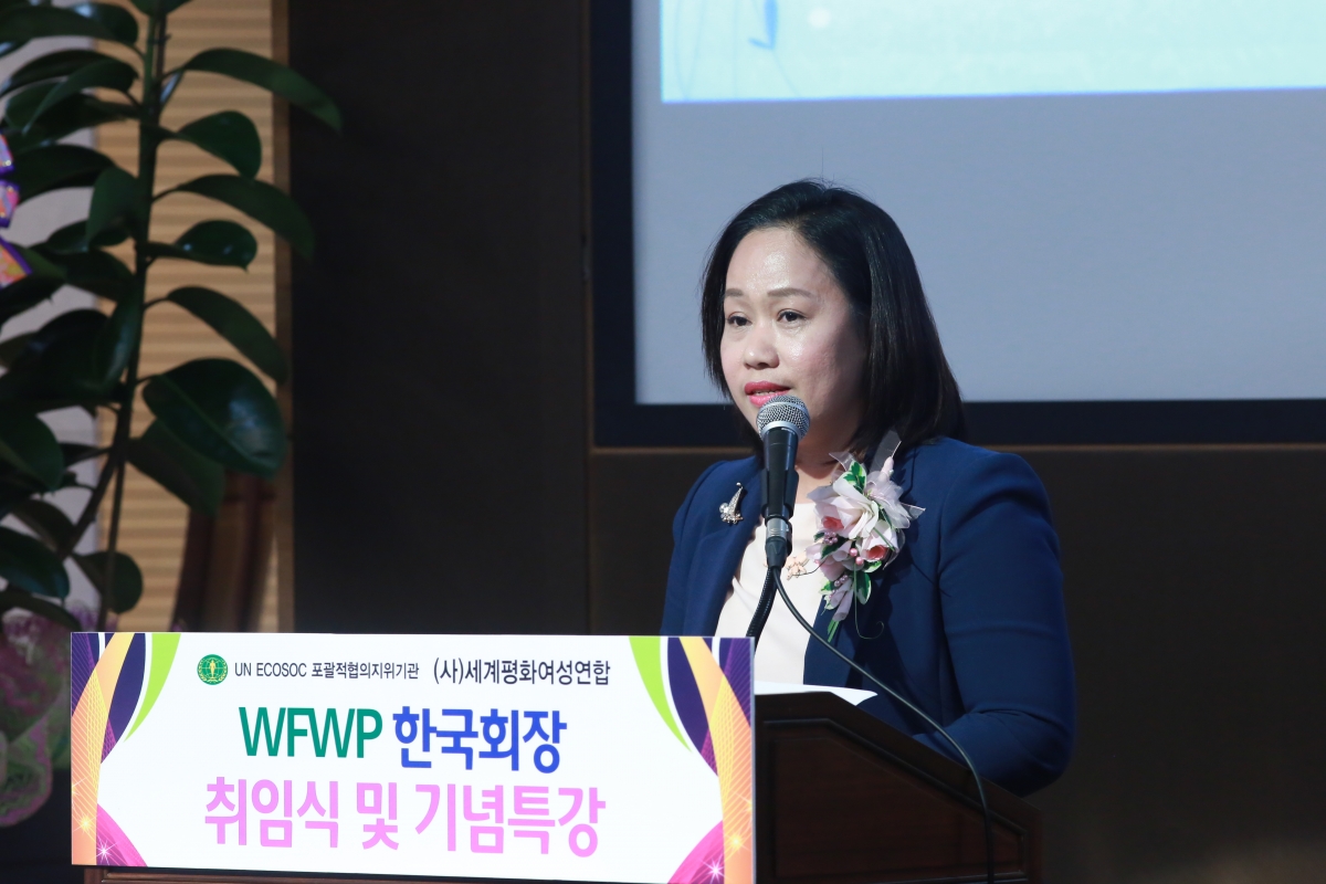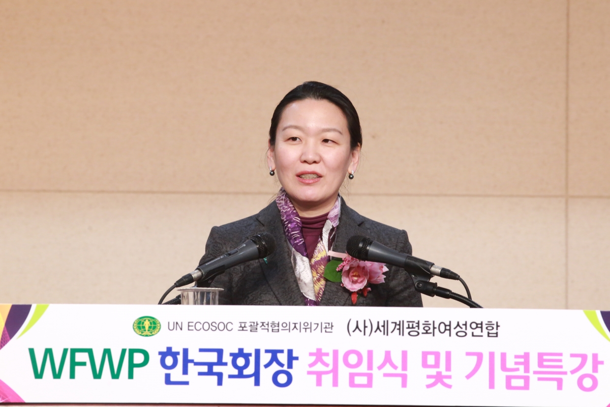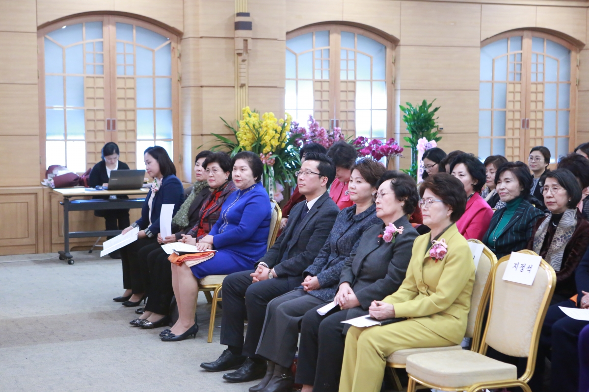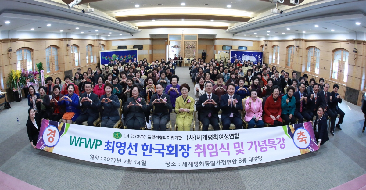 세계평화여성연합(이하 여성연합) 제6대 한국회장 취임식이 2017년 2월 14일(화), 세계평화통일가정연합(이하 가정연합) 8층 대강당에서 전국 여성연합 광역시, 도 임원 및 회원, 통일그룹 지도자 등 150여명이 모인 가운데 열렸다.