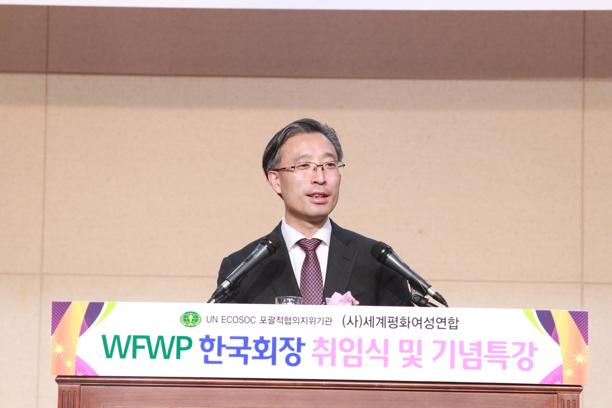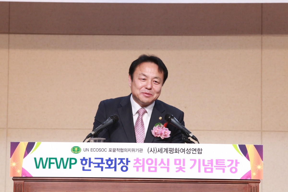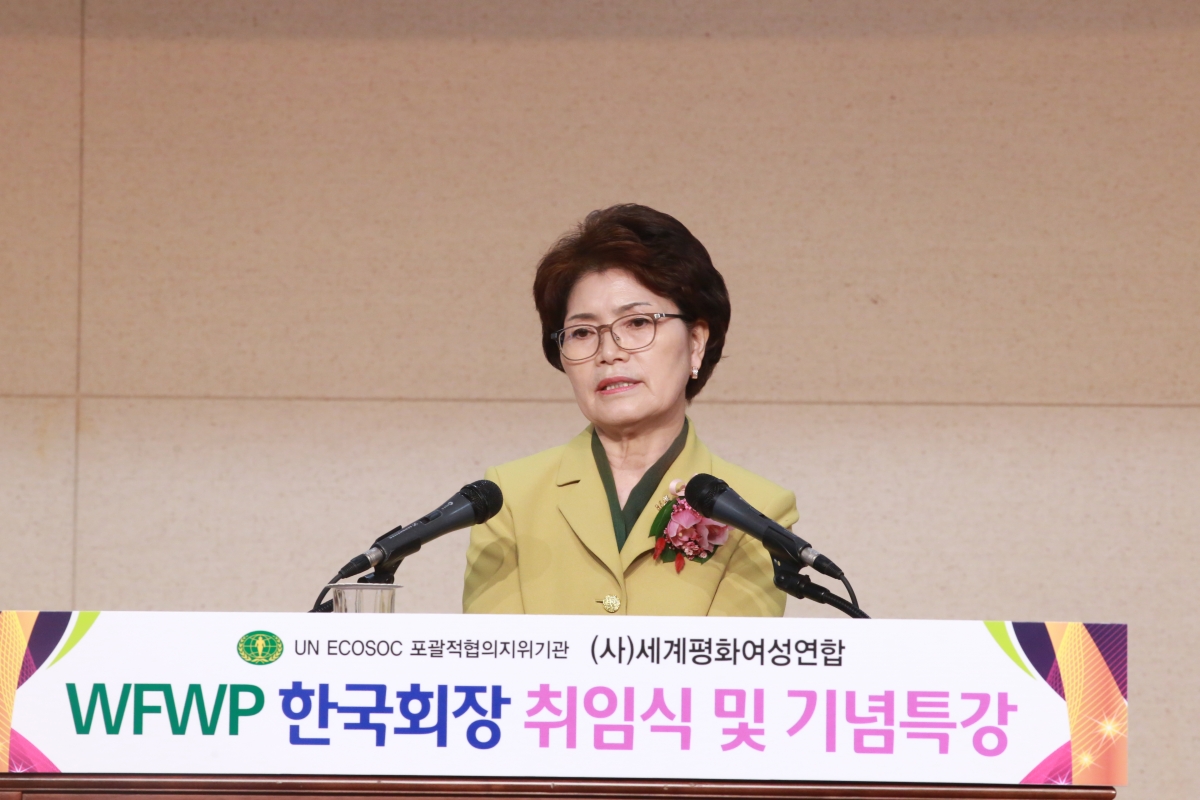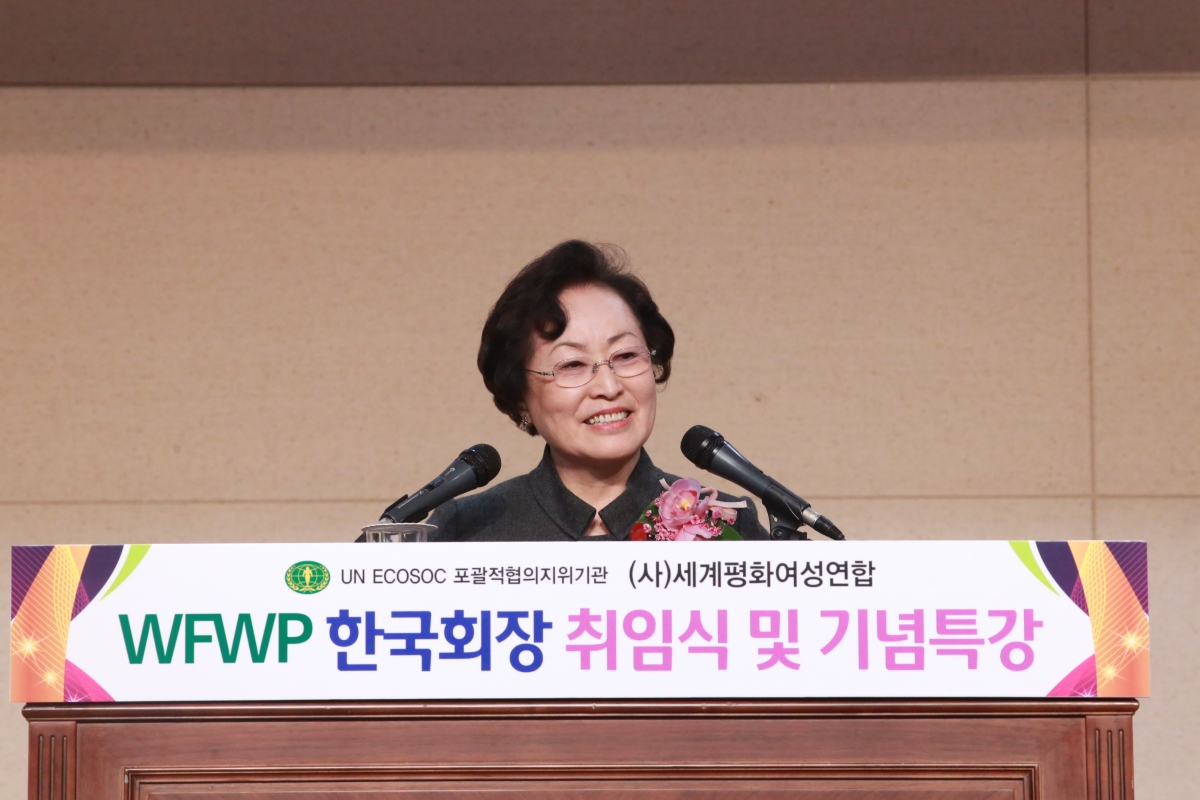 이후 “섭리의 봄 절기와 심정문화 창건” 주제로 오택용 교수(선문대학교)의 기념특강이 있었으며, 우다 에쯔꼬 부회장(여성연합)의 억만세 삼창으로 취임식 및 기념특강을 마쳤다.