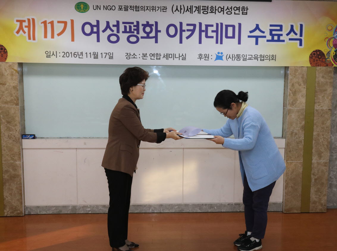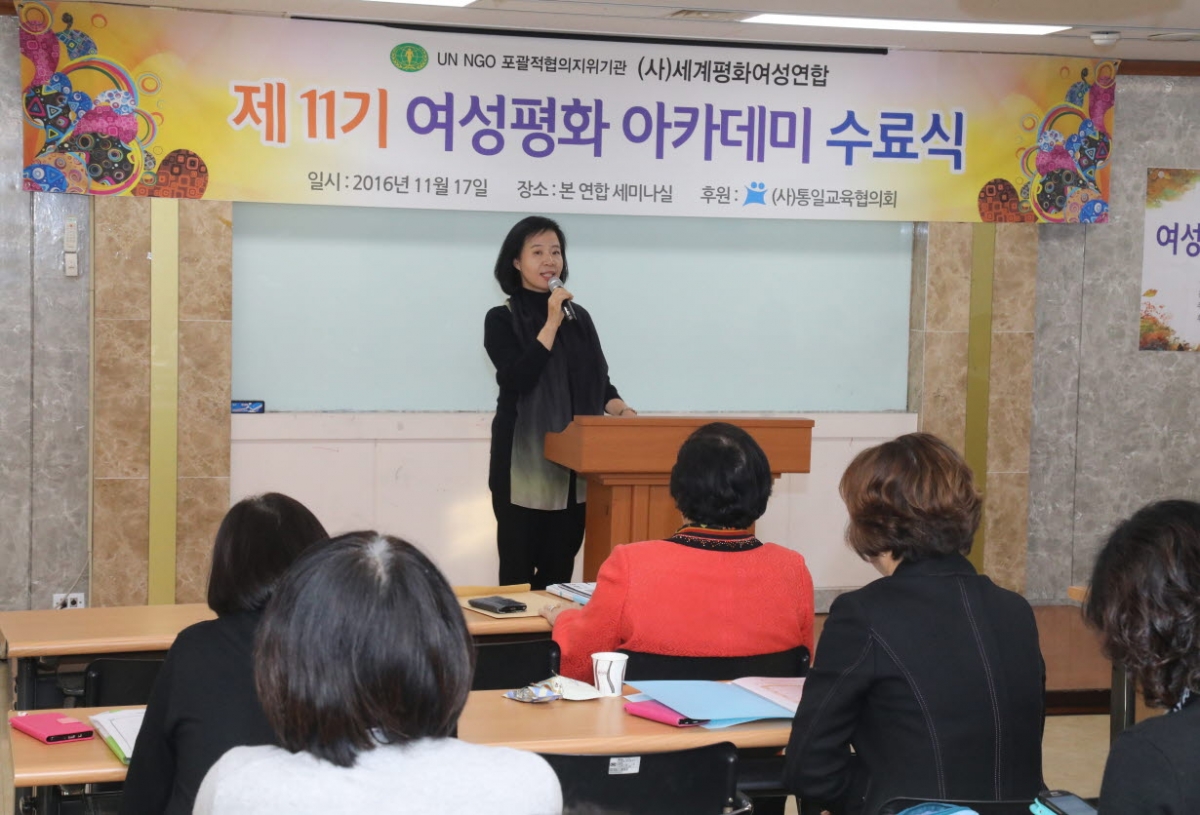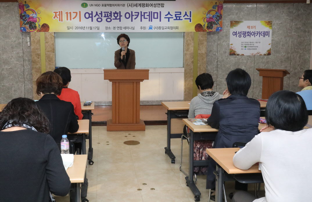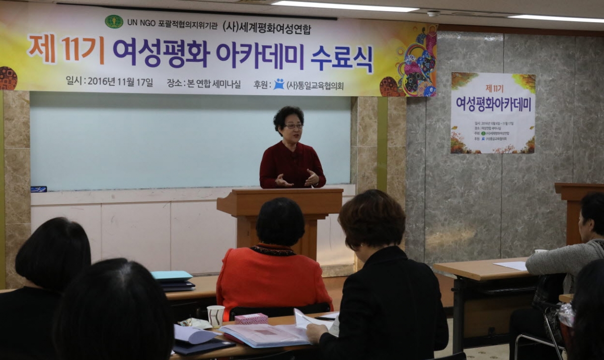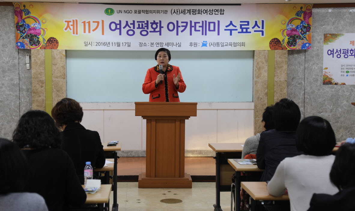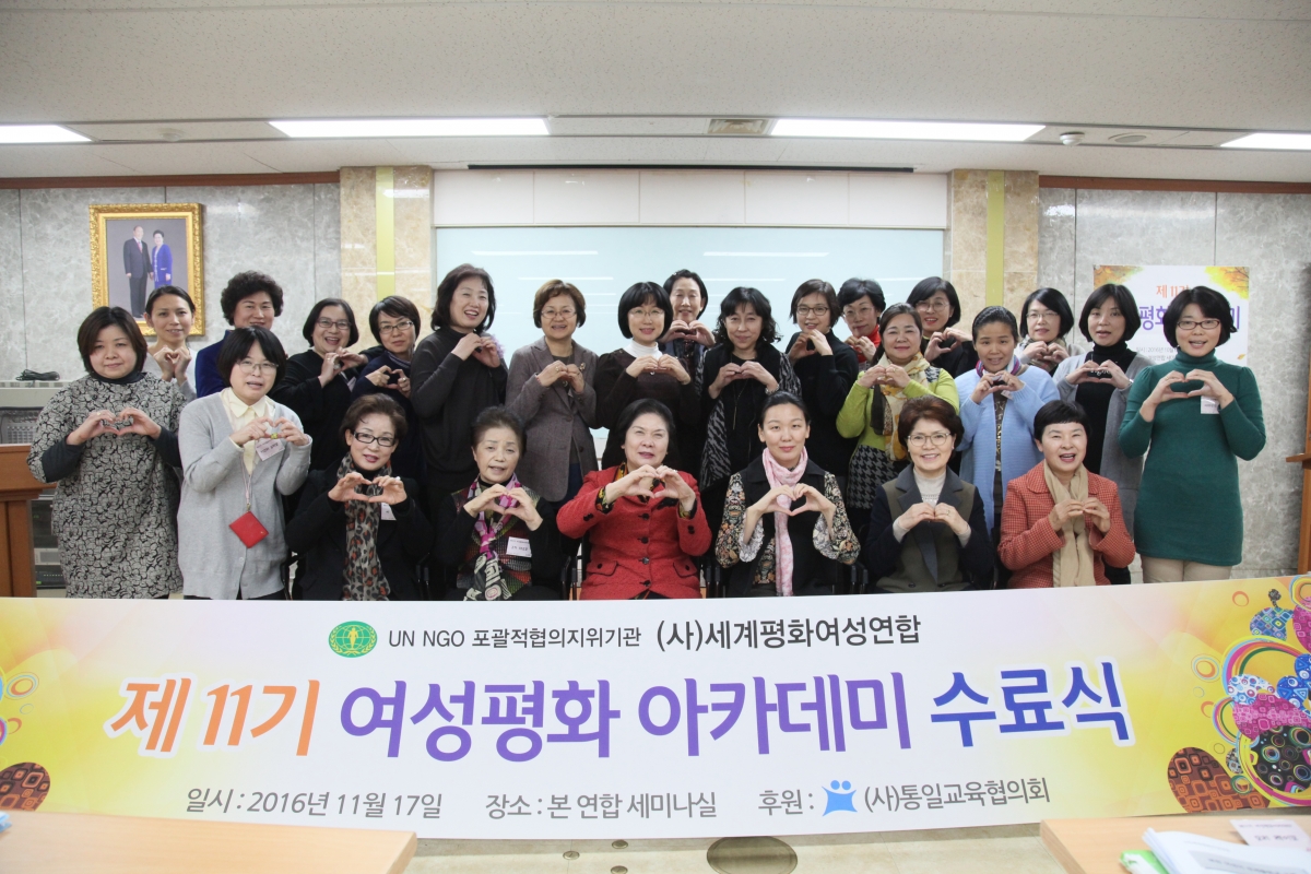 세계평화여성연합은 지난 11월 17일, 마지막 특강으로 과정의 모든 일정을 마무리 하며 수료식을 가졌다.제11기 여성평화아카데미 수료식을 가졌다.