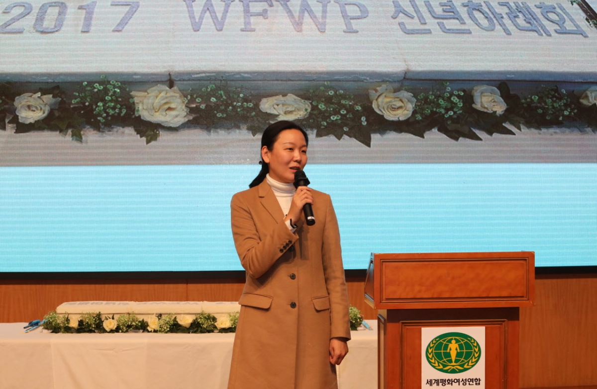 문연아 회장은 신년인사를 통해 “총재님의 신년 말씀을 상기 시키며, 비전2020를 위해 여성연합이 그동안 교육 해 나온 내용이 ‘어지럽고 혼란 한 때일수록 하늘이 바라시고 소망하는 길을 가야한다’는 것이었다. 여러분들의 봉사활동, 세계구호를 위한 모금. 시민강연회 같은 통일운동 등 모든 활동들이 이 민족, 한국이 가야할 길을 위해 무엇이 필요한지 단계적으로 알리기 위해 해 나온 일들이다. 앞으로는 2020년까지 더 널리 확산시켜야 할 책임이 우리에게 있다. 어려울 때일수록 중심이 바로 섰을 때는 하늘이 함께 할 것이고 도와줄 것이라는 것이다. 하늘은 서로 위하고 함께 협조하고 사랑하며 살아갈 수 있는 문화가 정착되기를 바라실 것이다.”라며 함께 나갈 수 있는 여성연합이 되자고 전했습니다.