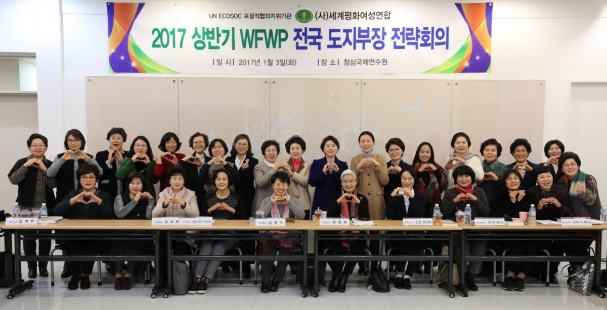 세계평화여성연합은 2017년 정유년 새 해를 맞이하여 1월 3일부터 5일까지, 청심국제연수원에서 2016년 활동을 평가하고 2017년 활동계획을 공유하는 전국 도지부장 전략회의를 진행하였다.