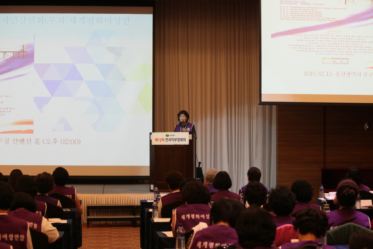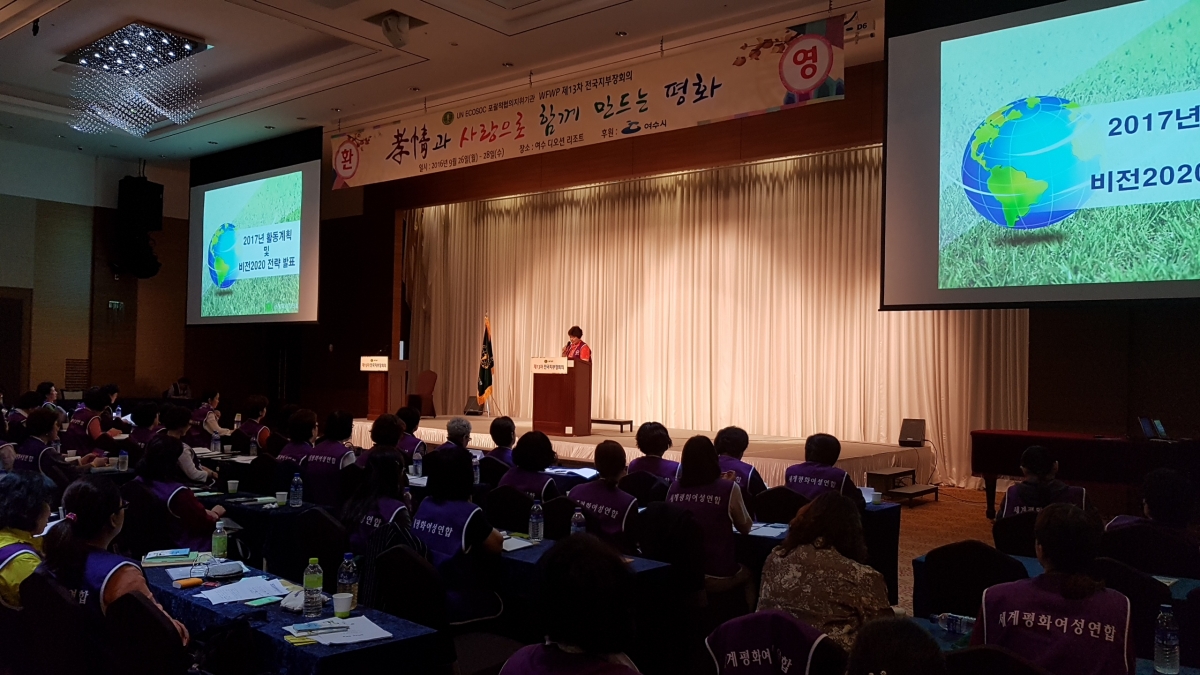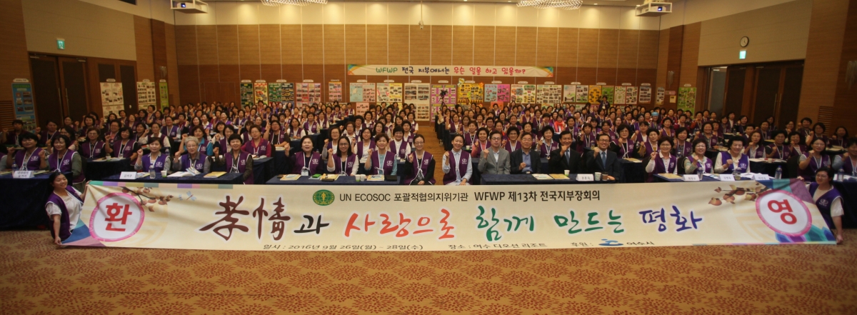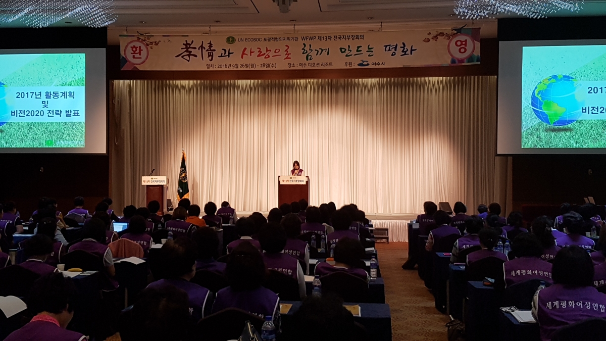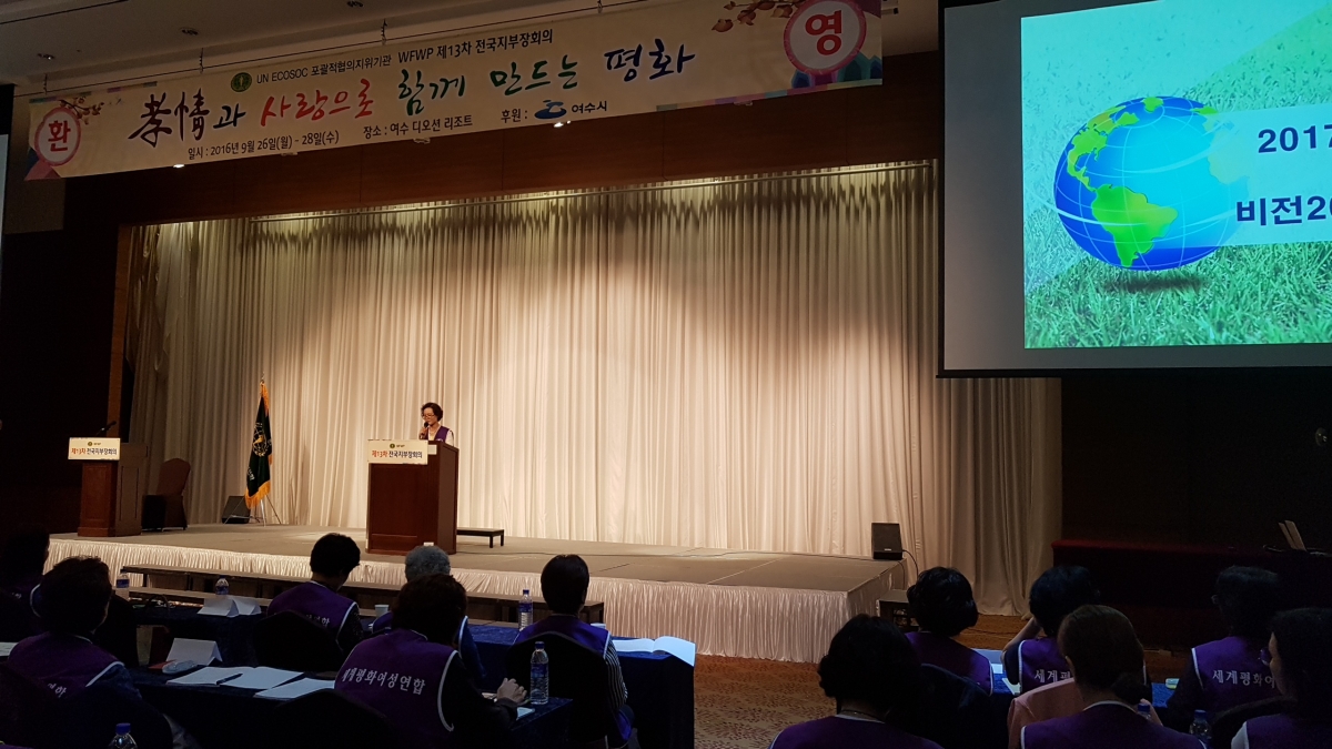세계평화여성연합 ‘2016 제13차 전국지부장회의’가 9월26일부터 28일까지 여수 디오션 리조트에서 ‘孝情과 사랑으로 함께 만드는 평화’라는 주제로 진행되었다.