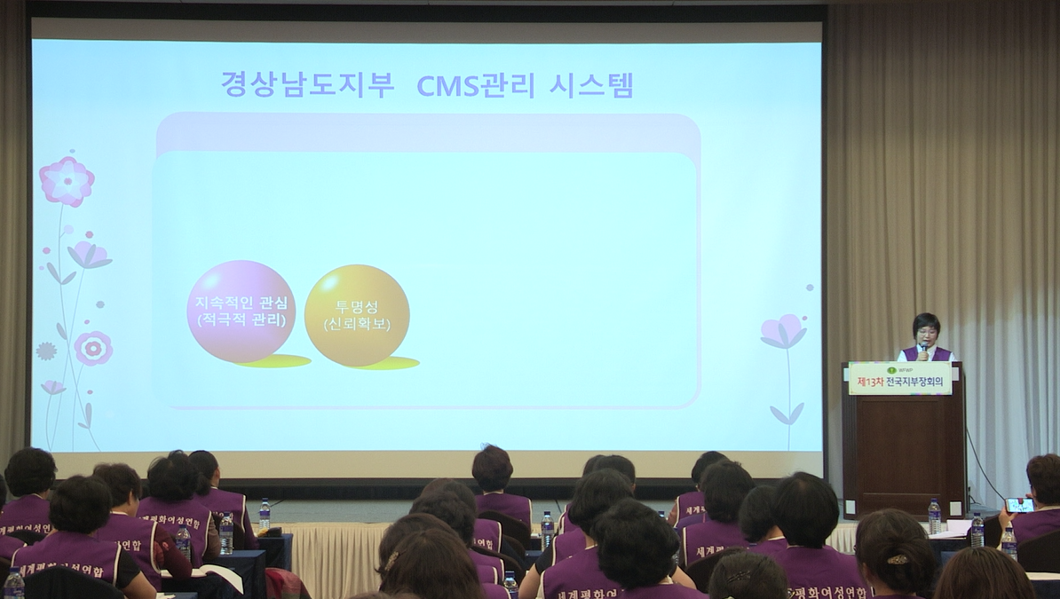 분야별 주요활동 보고에서는 봉사, CMS회원관리, 제5 유엔사무국 한반도 유치 활동, 통일공감 시민강연회와 평화세미나 활동에 대해 주제별로 강원도, 경상남도, 울산광역시, 전라북도 지부가 우수활동사례 발표를 하였다. 또한 전체 23개 지부에서는 2016년 활동내용을 담은 홍보 폼보드를 제작하여 회의기간 동안 전시를 하였다.