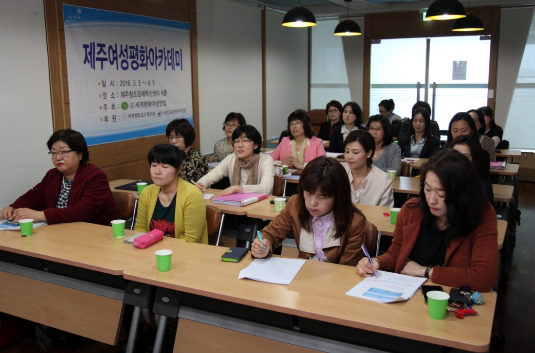 제주여성평화아카데미는 6주 간 평화와 통일, 국제경제 및 사회, 여성리더십에 관한 10강좌를 진행했으며 다문화가정 여성 21명이 참석하여 전원 수료하였다.