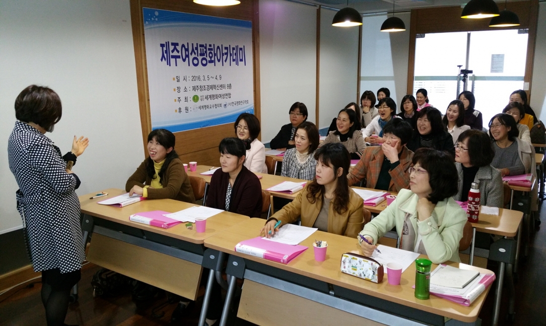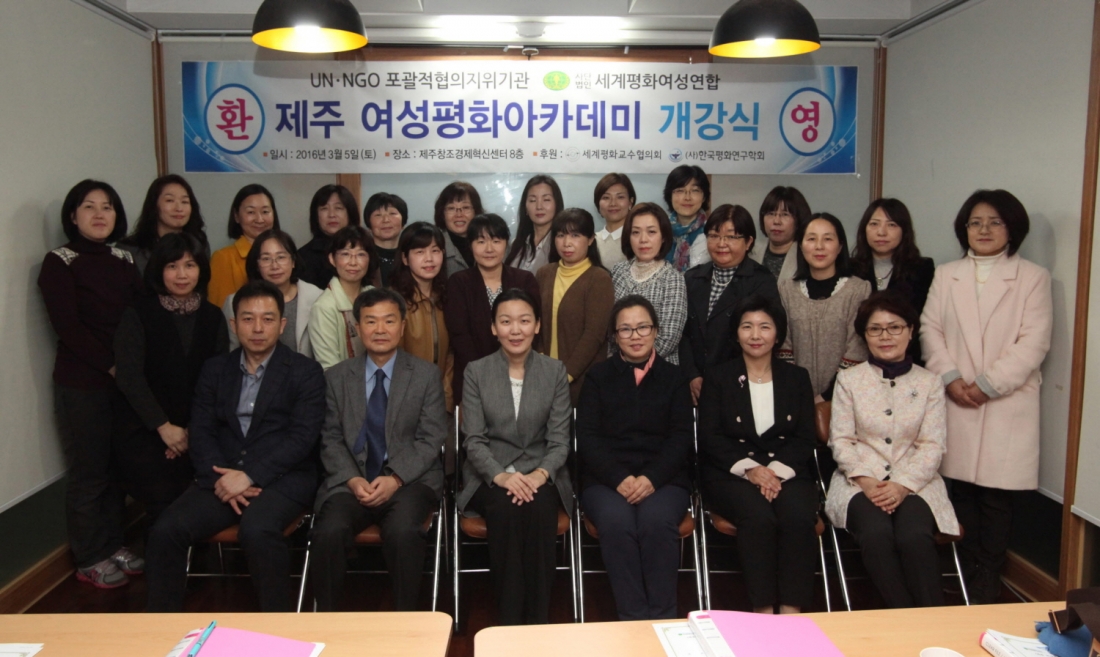 세계평화여성연합은 3월 5일, 제주창조경제혁신센터 8층 따라비오름에서 제주여성평화아카데미 개강식을 가지고 6주간의 아카데미 과정을 시작하였다.