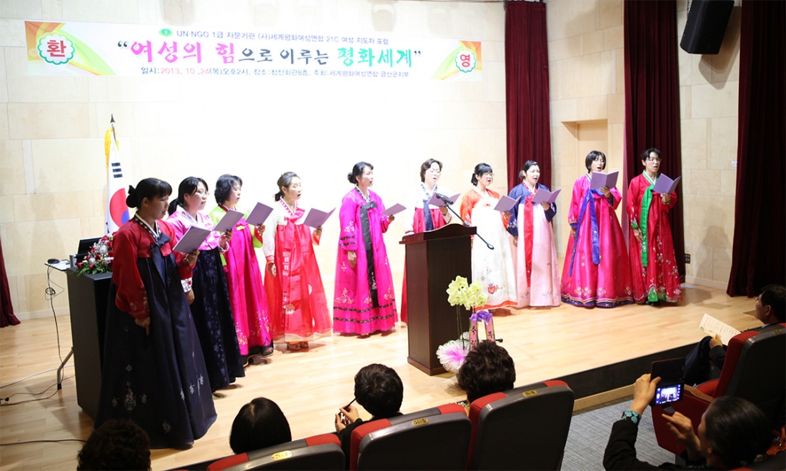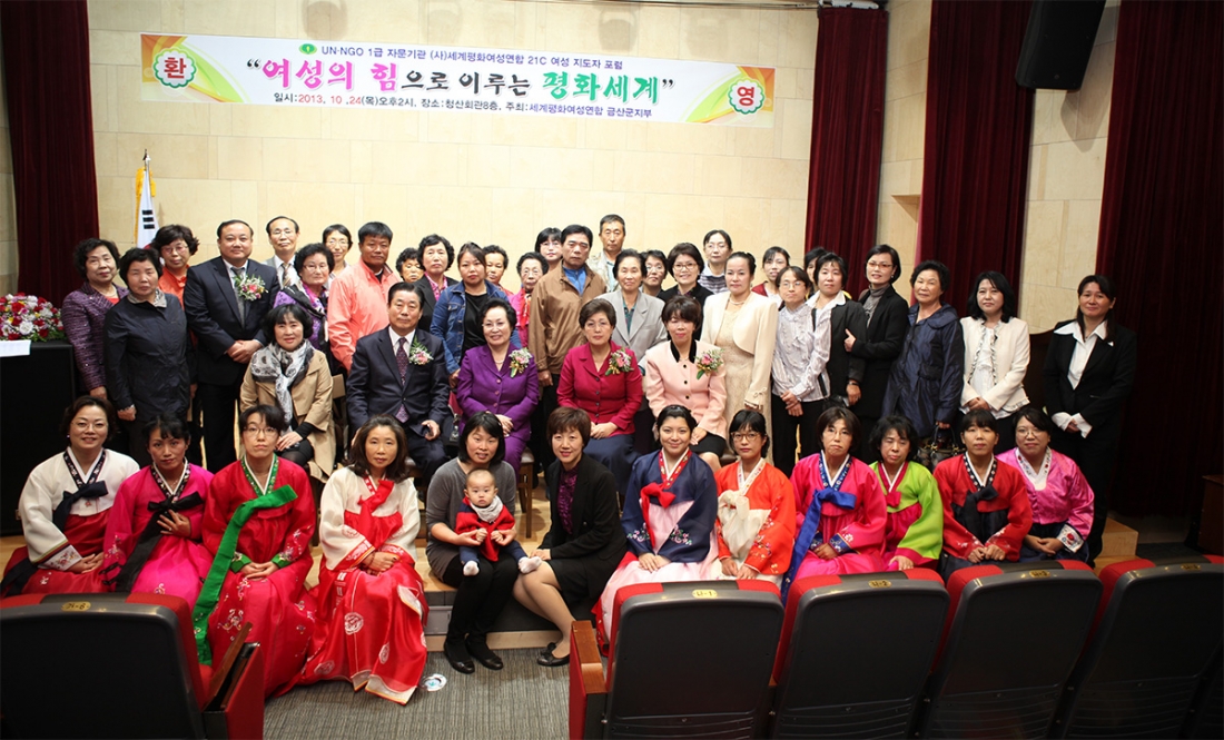 금산지부(지부장:우메가끼 나오미)는 10월24일, 금산군 청산회관 대강당에서 '여성의 힘으로 이루는 평화세계'라는 주제로 '21C 여성지도자 포럼'을 개최했다.