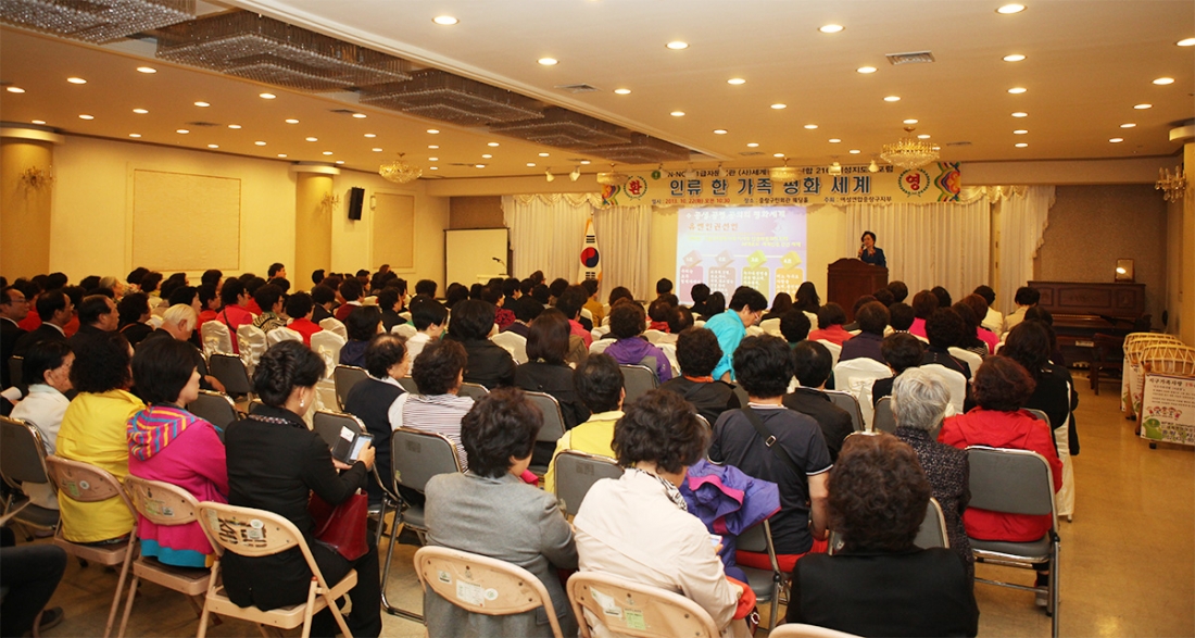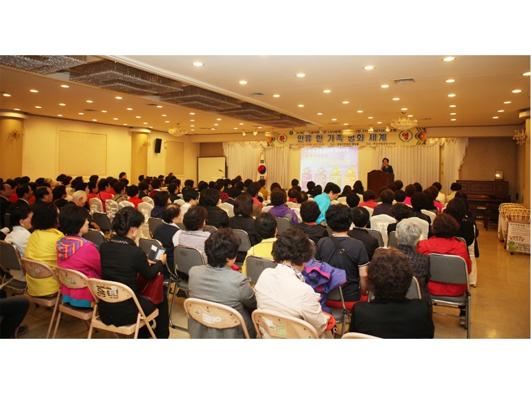 On October 22, the Joongrang Branch (Branch Leader: Jeong Min Cho) hosted the ‘21C Women Leaders Forum’ titled ‘World of Peace with Humanity as One Family’ under the leadership of President Lan Young Moon, in the Joongrang Community Center Wedding Hall with 120 local residents in attendance. The forum was opened with a Nanta performance prepared by the multicultural members of the WFWP as the pre-event performance. The forum was emceed by Member Joo Yeong Kim, and after the words of encouragement given by Church Leader Gil Nam Park (FFWPU- Joongrang-gu), President Lan Young Moon delivered the keynote speech. The participants said that the forum has helped them to gain a new recognition of the Women’s Federation for World Peace.