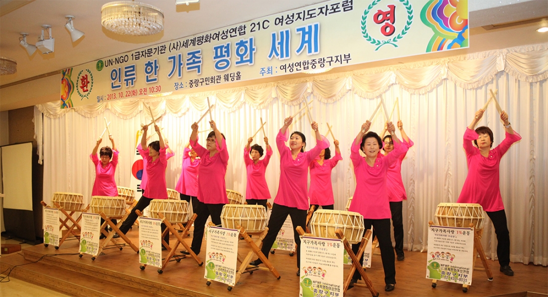 10월22일, 서울 중랑지부(지부장:조정민)는 문난영 회장님을 모신 가운데 '인류 한 가족 평화세계'라는 주제로 중랑구민회관 웨딩홀에서 지역주민 120명이 참석한 가운데 '21C 여성지도자포럼'을 개최했다. 이날 식전행사로 중랑구 여성연합 다문화 회원들이 포럼을 위해 준비한 난타공연으로 포럼은 개회되었다. 포럼은 김주영 회원의 사회, 조정민 지부장(중랑구)의 환영사, 박길남 교회장(중랑구 가정연합)의 격려사, 문난영 회장의 주제강연 순으로 진행되었다. 참석자들이 세계평화여성연합에 대해 새롭게 인식하게 되는 시간이었다고 참석소감을 전했다.