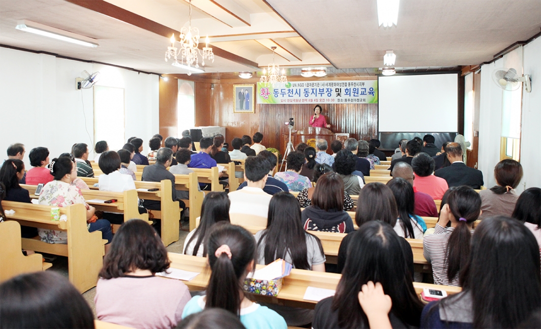 동두천지부(지부장:마쯔다 가즈꼬)는 9월 8일, 동두천지부 강당에서 여성연합 동지부장 및 회원교육을 가졌다. 이날 교육은 정우철 교회장의 환영사, 최영선 사무총장(본부)의 활동보고 및 동두천지부 시, 동지부장에 대한 임명장 수여, 문난영 회장 말씀 순으로 진행되었다.