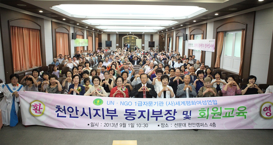 The workshop was emceed by Church Leader Jong Tae Lee, and after Branch Leader Seung Yeon Byeon of Cheonan gave a report, the One Love Choir sang a song, which was followed by a report on the activities of the WFWP by Secretary-General Young Sun Choi (Headquarters), a welcoming address delivered by Regional Church Leader Gyu Sam Lee, and a speech by President Lan Young Moon. Through her speech, President Moon introduced the global status and the worldwide activities of the WFWP to the members, and spoke on the role of 21st century women and mothers.