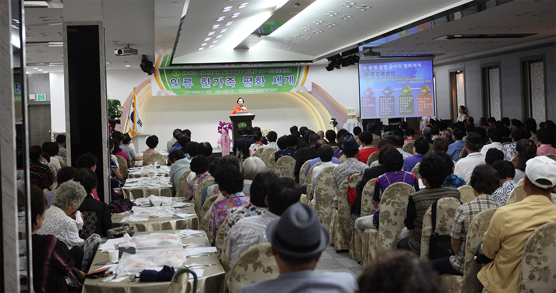The forum was opened by the MC, Administrative Director Eun Gyeong Lee, followed by congratulatory songs, a welcoming address given by Branch Leader Ok Yim Gu (Gapyeong), congratulatory addresses by Magistrate Seong Gi Kim (Gapyeong-gun) and Speaker Byeong Je Lee of Gun Assembly (Gapyeong-gun), and the keynote speech by President Lan Young Moon.