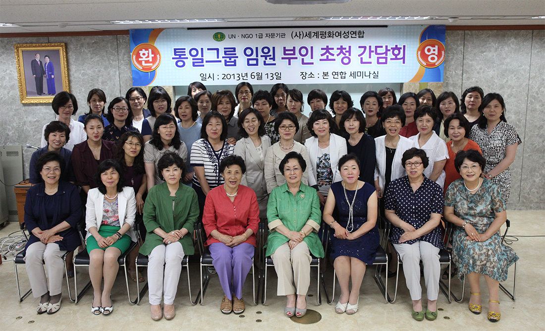 세계평화여성연합은 6월 13일, 본 연합 4층 세미나실에서 19개의 통일그룹 임원부인 43명이 참석한 가운데 ‘통일그룹 임원 부인 초청 간담회’를 가졌다.