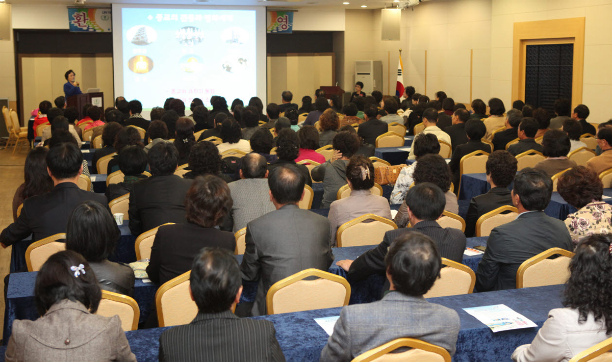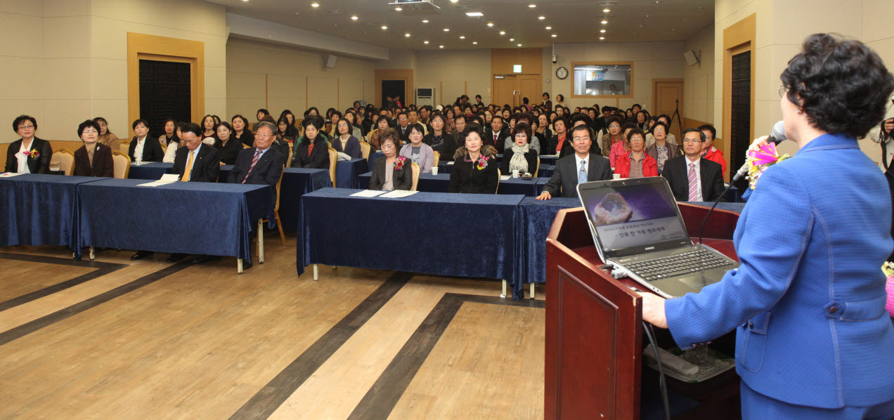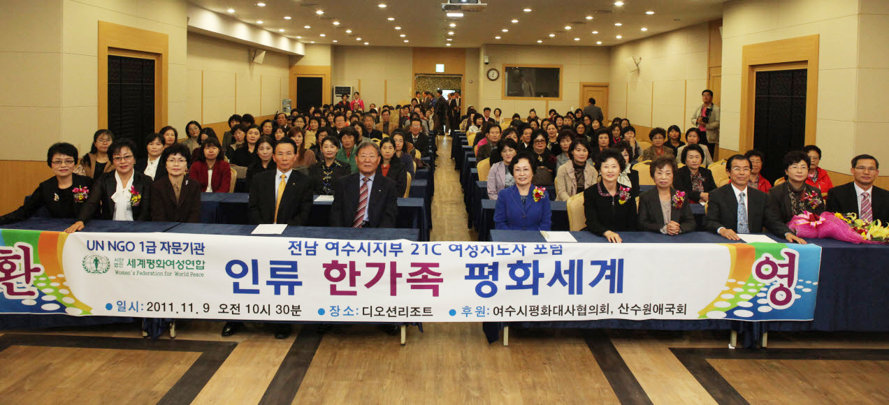 100 leaders from Yeosu City participated in the Forum which was presided over by Choi Bong-soon. With music by the True Love Choir, Branch Director Park Soon-hee opened the Forum with a welcoming address, which was followed by addresses by Mayor Kim Choong-suk (City of Yeosu), Provincial Director Son Sook-hee (Gwangju Jeonnam), and a very special presentation by President Moon Lan-young.