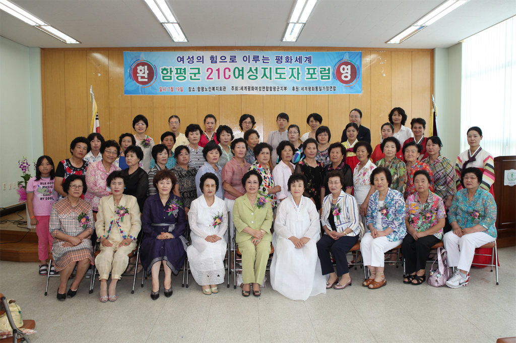 함평지부는 7월19일 함평군 노인복지회관에서 140명의 지역 지도자들이 함께 한 가운데「여성의 힘으로 이루는 평화세계」라는 주제로 포럼을 개최하였다.