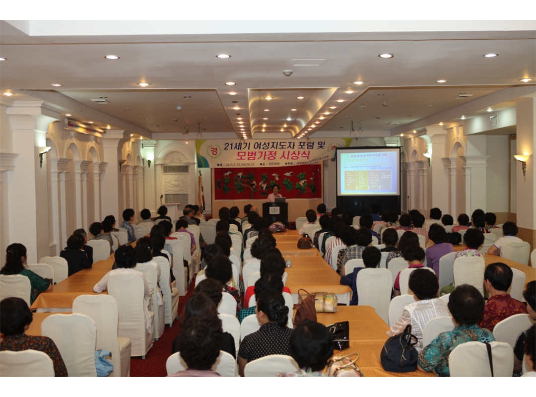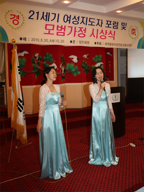 In particular, there was an "Award Ceremony for Model Families" which has been held for three years as the second part of the program. Presenters recommend local Seongbuk residents and awardees are selected by the presidents of local women organizations. There were several awards: "True Family Activity Award," "True Family Model Award," "Fecundity Award," "Happily Married Husband and Wife Award," and the "Devoted Son and Daughter-in-law Award."