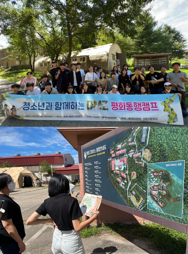 9월 3일, 파주 캠프 그리브스 일대에서 선정고등학교 학생 30여 명이 참석한 가운데 ‘청소년과 함께하는 DMZ 평화동행캠프’를 진행했습니다. 도전 DMZ 골든벨, 그리브스티어링 등 다양한 팀별 활동을 통해 한국 분단의 역사와 DMZ의 중요성에 대해 배울 수 있었습니다. 9월 3일 평화동행캠프에 참석한 학생들 |