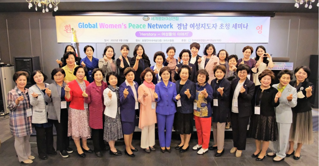 지난 9-10월 전국 7개 지역(9/16 인천, 9/22 서울북부, 9/23 경남, 10/5 대구경북, 10/6 부산울산, 10/18 서울남부, 10/28 가평군)에서 'GWPN 여성지도자 초청 세미나'를 개최했습니다. 'Herstory-여성들의 이야기'를 주제로 진행되는 GWPN 세미나는 각 지역의 여성지도자들이 활동을 공유하고, 한반도 평화통일을 위해 서로 협력해 나갈 것을 약속하는 교류의 장입니다. |