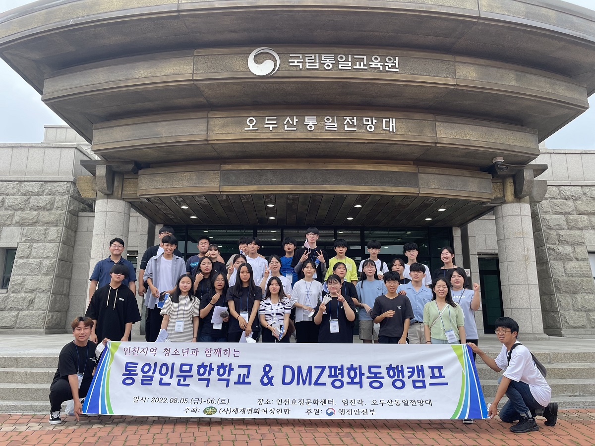 남북통일에 대한 청소년들의 기대감이 매년 낮아지고 있는 가운데, 청소년들에게 한반도 통일의 역사를 교육하고 현장체험을 통한 남북통일의 관심을 증진시키기 위해 세계평화여성연합 인천지부는 지난 8월 5일에서 6일까지 인천지역에 거주하는 청소년 24명을 대상으로 ‘통일인문학학교 & DMZ 평화동행캠프’를 개최했습니다. |