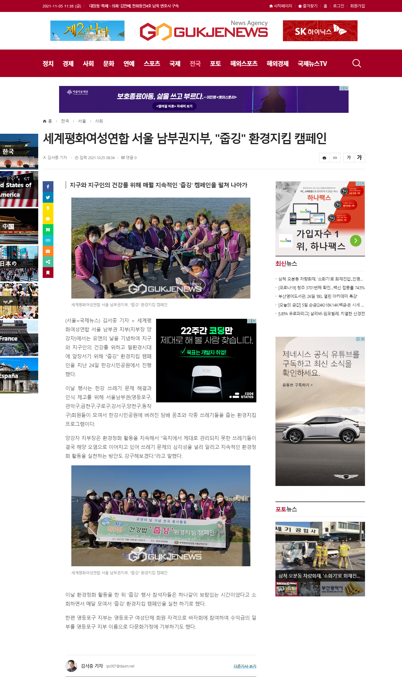 세계평화여성연합 서울 남부권지부, "줍깅" 환경지킴 캠페인