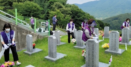 세계평화여성연합 호남?제주지부(회장 지모또 유끼꼬) 소속 회원 50여명은 28일 전북 임실군 호국원을 찾아 순국선열에 헌화하고 태극기 꽂기, 묘비 닦기, 잡초 뽑기 등 묘역 환경정화 활동을 펼쳤다.