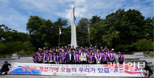 (사)세계평화여성연합 광주전남지부가 주최하는 ‘2024 호국보훈의 달 기념 호국영령 참배 및 봉사활동’이 지난 21일 오전 광주·전남 회원 60여명이 참석한 가운데 광주공원 현충탑에서 진행됐다.