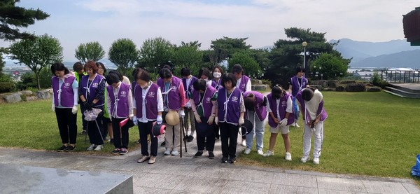 세계평화여성연합 전라남도 곡성군지부는 지난 25일 6월 호국보훈의 달을 기념해 ‘당신이 계셨기에 오늘 우리가 있습니다’ 라는 주제로 현충탑에서 회원 30여명의 참배와 추모식 및 청소 봉사활동을 진행했다.