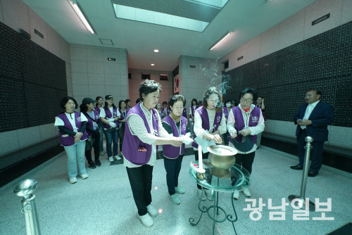 세계평화여성연합 광주전남도지회는 6월 호국보훈의 달을 맞아 지난 23일 광주공원 현충탑과 위패 봉안소에서 참배와 청소 봉사활동을 진행하며 호국영령의 희생 정신을 기렸다.